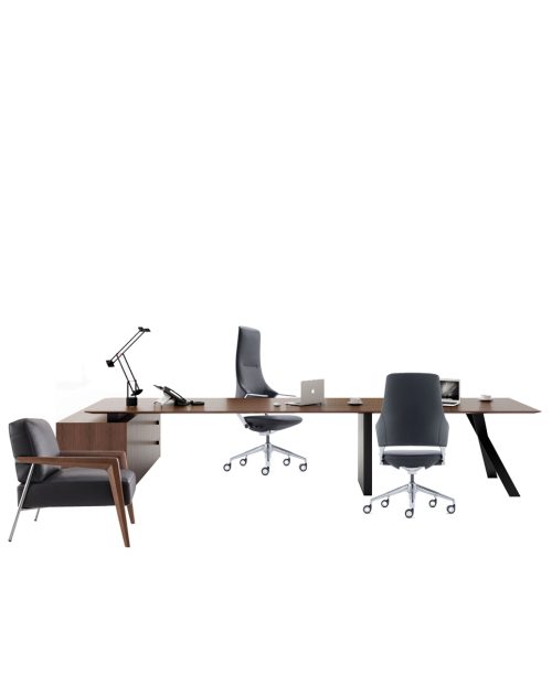 Loris, yalın ama etkileyici çizgileriyle ofis ortamına huzurlu bir otorite kazandırır.